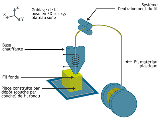 L’imprimante chauffe le plateau et la buse et commence l’impression du modèle 3D. La tête d’impression fait fondre le filament de plastique et se déplace pour déposer sur le plateau une succession de couches horizontales de plastique à la manière d’un mille-feuille. La durée de l’impression 3D dépend de la taille et des paramètres du modèle. |