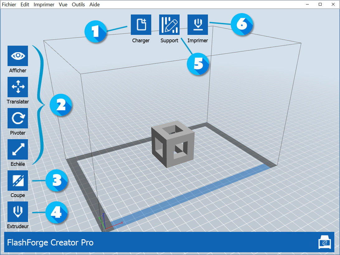 Pour ouvrir le fichier STL exporté à l'étape précédente on utilise le logiciel FlashPrint. A cette étape on va visualiser le modèle, si besoin le déplacer sur la plateforme, agrandir ou diminuer sa taille, mais surtout régler les paramètres d'impression !