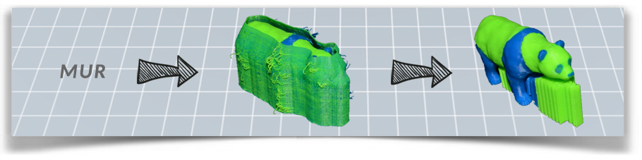 Lors des impressions bicolores le mur permet de créer un « bouclier » autour de la pièce afin gratter l'excèdent qui s'écoule des extrudeurs et de s’assurer que les buses soit parfaitement propre avant d’atteindre la pièce.