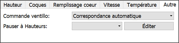 Commande du ventilateur : Définir le moment d'activation du ventilateur de refroidissement. La hauteur peut être préréglée pour que le ventilateur démarre à ce point.