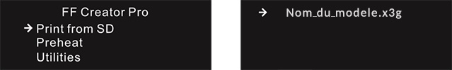 Insérer la carte SD dans la fente de l'imprimante 3D puis sélectionner Print from SD puis le Nom de votre modèle 3D !